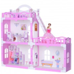 Комплектация: конструкция домика, стол, 2 стула, шезлонг, гардеробная, лестница, набор наклеек. Кукла в комплект не входит.